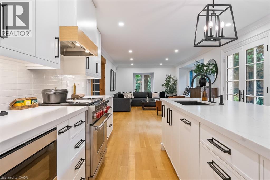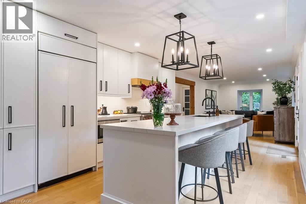 Welcome to 138 Cavendish Court, nestled in Oakville’s coveted Morrison neighbourhood. Set on a private 0.42-acre lot at the end of a quiet cul-de-sac, this extensively updated residence combines refined style with everyday livability. Featuring 4+1 bedrooms, a 3-car garage, and nearly 4,500 sq. ft. of finished space, it represents a rare opportunity in this prestigious community. The main level showcases a bright, free-flowing layout with natural oak flooring and oversized windows that flood the home with natural light. The Living Room with gas fireplace feature wall opens to the Dining Room for formal or casual gathering. Ideal for culinary enthusiasts and entertainers alike, the designer kitchen showcases a beautiful quartz island, Wolf and Sub-Zero appliances, along with custom cabinetry. The adjacent family room, framed by nearly full-height windows and a cozy built-in bench, overlooks the landscaped backyard and pool area. A private office, stylish powder room, and functional mudroom complete this floor. Upstairs, the primary retreat features a spa-inspired 5-piece ensuite and spacious walk-in closet. Three additional bedrooms, and two updated bathrooms (one bedroom with private ensuite) provide convenience for families' busy lives. The finished lower level offers exceptional versatility, with an industrial design flare including a 5th bedroom, 3-piece bath, recreation/media room, and billiards/fitness space. Outdoors, enjoy your own backyard haven with concrete salt water pool, integrated spa, and extensive landscaping surrounded by mature trees for ultimate privacy—bringing a Muskoka feel to the city. Ideally located near the lake, parks, shopping, top-rated schools, and only minutes to downtown Oakville, the GO Train, and highways, this home delivers an unmatched blend of luxury and privacy for family living. (id:46441)