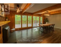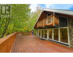 Welcome to 1382 Muskoka Road 169 N A Private Muskoka Retreat Just Minutes from Town. Set on nearly an acre of mature, forested land, this beautifully updated home offers over 2,100 sq ft of finished living space and delivers the perfect blend of modern convenience and natural serenity just a short drive to all of the amenities that Gravenhurst has to offer! Lake Muskoka and beaches are plentiful and Pine Lake is directly across the road. The main floor features an open-concept layout with a warm, rustic ambiance highlighted by wood ceilings, natural finishes, and walkouts to expansive front and back decks. A large bedroom on this level boasts its own vaulted ceiling and direct access to a nearby full bathroom perfect for guests or main-floor living. Upstairs, the primary suite is a true escape with its own vaulted ceilings, private balcony, walk-in closet, and a beautifully renovated ensuite bathroom (2021). Two additional bedrooms share a connected Jack & Jill bathroom, making this layout ideal for families or vacation guests. Upgrades & Improvements (Newest to Oldest):New siding, soffits, fascia & eaves (2025)New rear deck (2022)New front deck (2022)New roof shingles (2022)Upgraded electrical panel to 200 amp (2021)Security camera system installed (2021)Fully renovated ensuite bathroom (2021)Other features include central air conditioning, UV water filtration, rented propane furnace, hot water tank, and propane tanks. A detached two-car garage has been converted into a large storage building, perfect for toys, tools, or seasonal equipment. Located on a year-round municipally maintained road, this property offers unbeatable access to area lakes, trails, and amenities while still feeling like a peaceful Muskoka getaway. (id:46441)