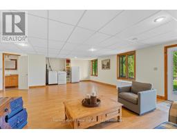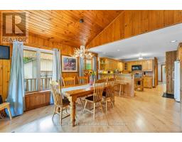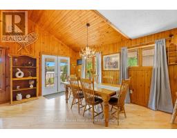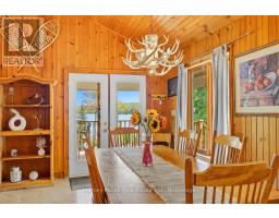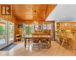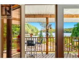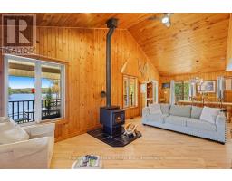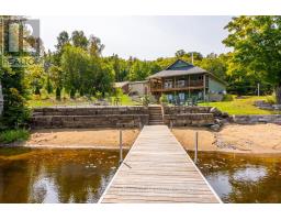 In the heart of Almaguin minutes from Sprucedale awaits this solid Year Round lakefront cottage/residence with stunning lake views and gentle topography, on rarely offered 'Doe Lake'. Over 2,600 sq. ft. of living space enhanced by a wraparound covered porch. Inside, a welcoming foyer just ahead of an open concept cook's kitchen, lakeside dining, and wood-lined living room complete with vaulted ceilings and a cozy woodstove. 2 main floor bedrooms including the spacious primary with ample closets and a 4pc. ensuite. Additional private bedroom & 3pc. bath. Finished lower level walkout features even more living & sleeping quarters with large rec. room, 3pc. bath & magnificent mechanicals including 2017 FA propane furnace & 2023 central air. Delightful level lot with expansive water's edge glass-railed patio & firepit spot, toddler friendly sandy shore, dock, and once again wonderful long lake views & sunrises. Loads of parking, handy storage shed, and sun all day. This is a rare year round lake front gem, available for under a million, in an ideal location with ease of year round paved municipally maintained road access. Being offered to market mostly furnished & turnkey, in move-in ready condition, for those seeking immediate enjoyment in all four seasons. (id:46441)