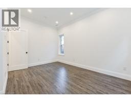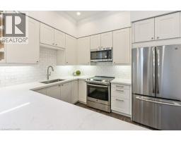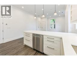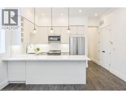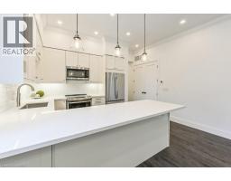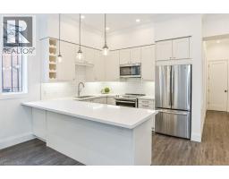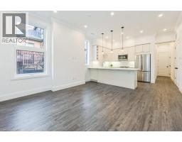 One of six amazing custom units in a fully rebuilt century building. Bright, spacious 1 bed unit steps to Downtown James street, Harbour West and Hunter Street GO, St Josephs Hospital. This main floor unit faces west providing great light in the open concept living space with bright windows, soaring ceilings and gallery sized walls. An efficient kitchen with breakfast bar, wine rack, stainless appliances, stone counters and a rustic subway backsplash has room to move and seating to entertain. Durable wood look laminate floors throughout are cozy and neutral for any decor. The bedroom will fit a king sized bed and has a large double door closet with custom built ins. The spa bath features a double vanity with stone counter, marble look floors with in floor heat, and luxe shower head combo. This unit features 2 additional storage cupboards, in suite laundry, LED potlights and crown moulding throughout, custom window coverings, in unit furnace/ac. Water included. Onsite parking included. (id:46441)
