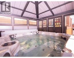 Discover this exceptional West Brant residence featuring 3 bedrooms, 3.5 bathrooms, a completely finished basement, and your own private backyard retreat! Thoughtfully designed and situated near parks, walking trails, and highly-rated schools. The exterior showcases impressive street presence with professionally landscaped gardens, paved driveway, and front balcony. Inside, you'll find a formal dining room flowing into a gourmet kitchen equipped with rich mocha cabinetry, dual pantries, and a generous center island—ideal for hosting gatherings. Beyond the composite deck lies your personal escape: a newly installed in-ground pool, relaxing hot tub, and elegant interlocking stone patio. Upstairs, the great room features soaring 14-foot ceilings and access to a second balcony, while the expansive primary suite includes a walk-in closet and spa-inspired ensuite. Two additional well-proportioned bedrooms and an upper-level laundry complete this floor. The finished lower level offers a recreation room with wet bar, modern laundry space, and a deluxe bathroom featuring heated floors and rainfall shower—with potential as an in-law suite or separate apartment thanks to direct garage access. This turnkey property combines lifestyle, functionality, and easy-care living. Don't miss this opportunity! (id:46441)