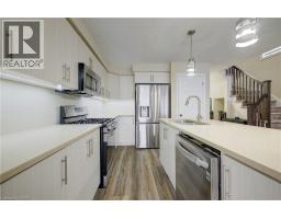 MODERN & SPACIOUS FREEHOLD END UNIT IN A FAMILY-FRIENDLY NEIGHBOURHOOD! Welcome to 14 Harrison Drive in Cambridge, where comfort meets style in this beautiful end-unit townhome offering over 1890 sq. ft. of living space. The bright and airy main floor is filled with natural light, featuring a stunning kitchen with granite countertops, an island with a breakfast bar, and an open view of the dining and family room. Large sliding doors open to a rear yard waiting for your touches. A convenient powder room completes this level. Upstairs, you'll find 3 generously sized bedrooms, including the primary suite with a walk-in closet and a luxurious 4pc bathroom, boasting a beautiful stand-alone tub. 2 additional bedrooms share another well-appointed 4pc bathroom. The finished lower level expands your living space with a cozy rec room, an additional 4pc room, laundry facilities, and extra storage. With parking for up to 3 vehicles (including a single garage and an extended tandem driveway), this home has plenty of space for the whole family. Located within walking distance to top-rated schools, the YMCA, public transit, and all essential amenities, plus just minutes from Highway 401—this home has everything you need for convenient, modern living. (id:46441)