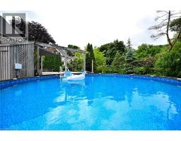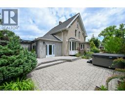 STATELY 2 1/2 STORY GEORGIAN STYLE DESIGNATED HISTORICAL HOME. Built in 1905, known as the Helen Gibson House. Located on large property in the heart of the downtown core on quiet tree-lined street below the escarpment among other character homes. Beautifully updated throughout! The front of this home is graced by the impressive neo-classical vaulted portico with pillars. Spacious foyer opens to large family room with newly installed wood burning fireplace insert in 2023 and oversized leaded glass bay window to bring in the light. Formal dining room with leaded glass windows overlooking the gardens. New kitchen installed in 2023. Main floor laundry, 2PC bath, main floor den/office with wall-to-wall bookcases. Double sliding doors lead to deck, patios & backyard oasis complete with pool & gazebo. Open staircase to upper-level leads to primary bedroom with walk-in closet & ensuite bath. Two additional bedrooms & bath. Second staircase leads to attic (764 square foot space) great potential to create extra living space. OTHER FEATURES INCLUDE: hardwood floors, new roof shingles 2018, new above ground pool 2024, new hot tub 2024, stainless steel appliances in kitchen, washer/dryer, 2 1/2 baths, 200 amp service. Heat pump, A/C & new on-demand water heater (owned) 2023. Long interlock double driveway (fits 4 cars), EV charger, walkway & patios. Two garden sheds. Perfectly situated a block from the downtown core and a short stroll to the Bruce trail & park. This heritage home is surrounded by its award-winning gardens. Calling all historians: It will take only one visit for you to fall in love with this rare offering! (id:46441)