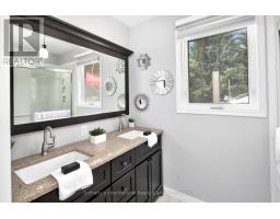 Welcome to this charming raised bungalow nestled on a highly sought-after, quiet cul-de-sac. Situated on a generous 0.5+ acre lot, this home offers exceptional privacy surrounded by mature trees your own private retreat just minutes from town. Step outside onto the expansive deck, perfect for entertaining or simply enjoying the serene, tree-lined setting. Step inside to discover a beautiful abundance of light, and an open interior featuring thoughtfully renovated rooms. The main floor boasts a spacious primary bedroom, two additional bedrooms, an open concept kitchen highlighted with quartz counter tops and a stylish shiplap feature wall that adds warmth and character. The lower level offers even more living space with an additional bedroom, a large rec room, an exercise room, and the potential for an in-law suite ideal for multigenerational living or guests. This is a rare opportunity to own a move-in ready home in a tranquil, family-friendly location with plenty of room to grow. (id:46441)