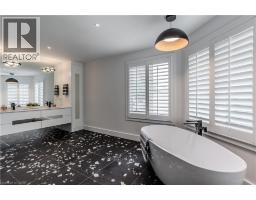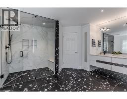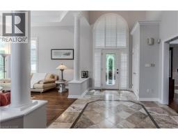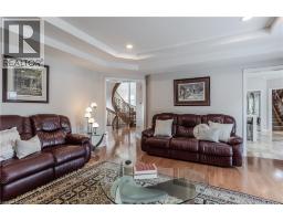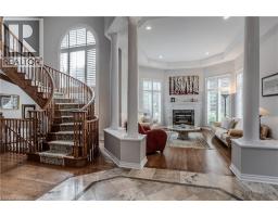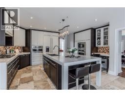 Welcome to this exceptional residence on a quiet court in the prestigious Tyandaga Highlands community. Set on a rare corner lot, this fully renovated home offers 6039sf of living space, ideal for large or multigenerational families seeking luxury, privacy, and functionality. Upon arrival, the curb appeal is striking—an elegant brick and stone façade, landscaped grounds with stone retaining walls, and a 9-car concrete driveway, plus a rare triple car garage. A grand archway entrance and spiral staircase set the tone for the upscale finishes found throughout. Step inside to a bright, open-concept layout designed for everyday luxury. Hardwood floors and California shutters run throughout, complemented by refined details including tray ceilings, wainscotting, and crown moulding. The formal living room is flooded with light from 4 large windows and features a gas fireplace. The spacious dining room is ideal for hosting, while the show-stopping kitchen offers quartz countertops, island with seating for 5, built-in appliances, dual wall ovens, and a sun-lit breakfast nook with access to the back deck. A family room with gas fireplace and a home office complete the main level. Upstairs, the primary suite feels like a retreat, complete with a large walk-in closet, a spa-inspired ensuite with a freestanding tub, oversized glass shower w/ bench, and dual sink vanity. 2 additional bedrooms share a modern 4pc bathroom. A separate upper-level wing, accessible through a 2nd staircase, offers a private bedroom with 2 walk-in closets, sitting room, and ensuite bath—perfect for in-laws, teens, or a live-in nanny. The fully finished basement with separate entrance includes a rec room w/ fireplace, full kitchen w/ heated floors, bedroom, and 2 3pc bathrooms (one with heated floors)—an ideal secondary living space. Outside, enjoy a pool-sized yard with elevated deck, large patio with pergola, and ample green space for kids and pets. This home is truly one-of-a-kind, don’t miss out! (id:46441)