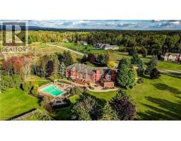 Luxury estate living on 1.99 acres in the prestigious Kerscott Heights of Dunrobin, offering unparalleled elegance, privacy, and a lifestyle of distinction. A dramatic entry through automatic wrought-iron gates and along the interlock driveway leads to a stately 7,000+ sq. ft. residence with 4-car garage. Inside, the grand circular foyer with sweeping staircase opens to sophisticated living spaces, including a chef's kitchen, and custom cabinetry overlooking the gardens. The great room captivates with soaring ceilings, a custom stone wall fireplace, perfecting framing the resort-style backyard with inground pool, hot tub, firepit, and multiple terraces for entertaining. The 1,000+ sq. ft. primary retreat features dual walk in closets, spa-inspired ensuite, fireplace sitting area, and private balcony with commanding views. Upstairs offers four bedrooms, multiple baths, and a library landing, while the finished lower level includes a guest suite, recreation and games rooms, and abundant storage. With nearly $1M invested in luxury renovations and premium finishes throughout, 141 Kerry Hill Crescent is more than a home-it is a sanctuary, a statement, and the lifestyle you've been dreaming of. (id:46441)