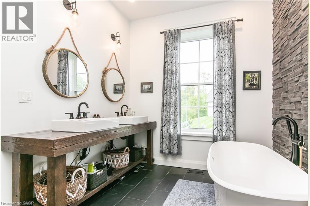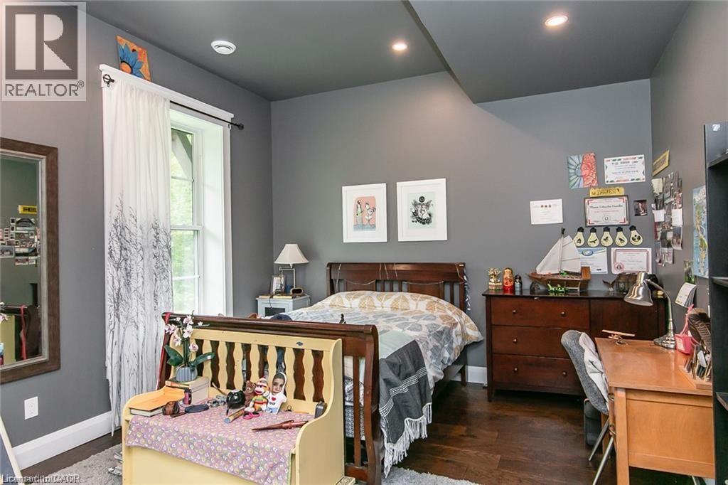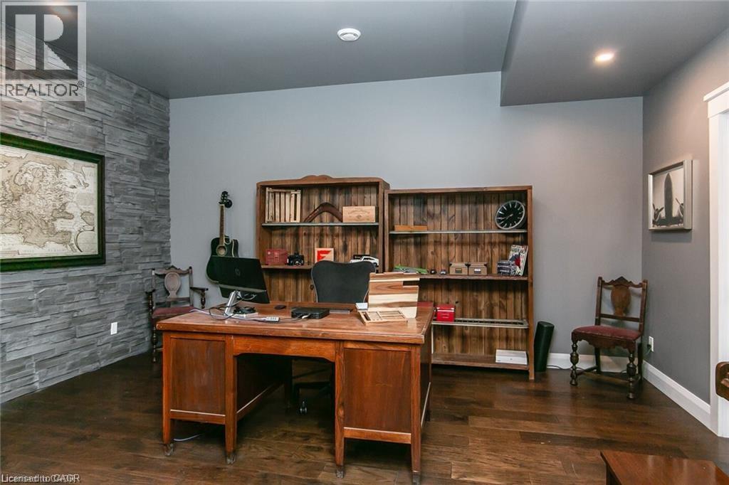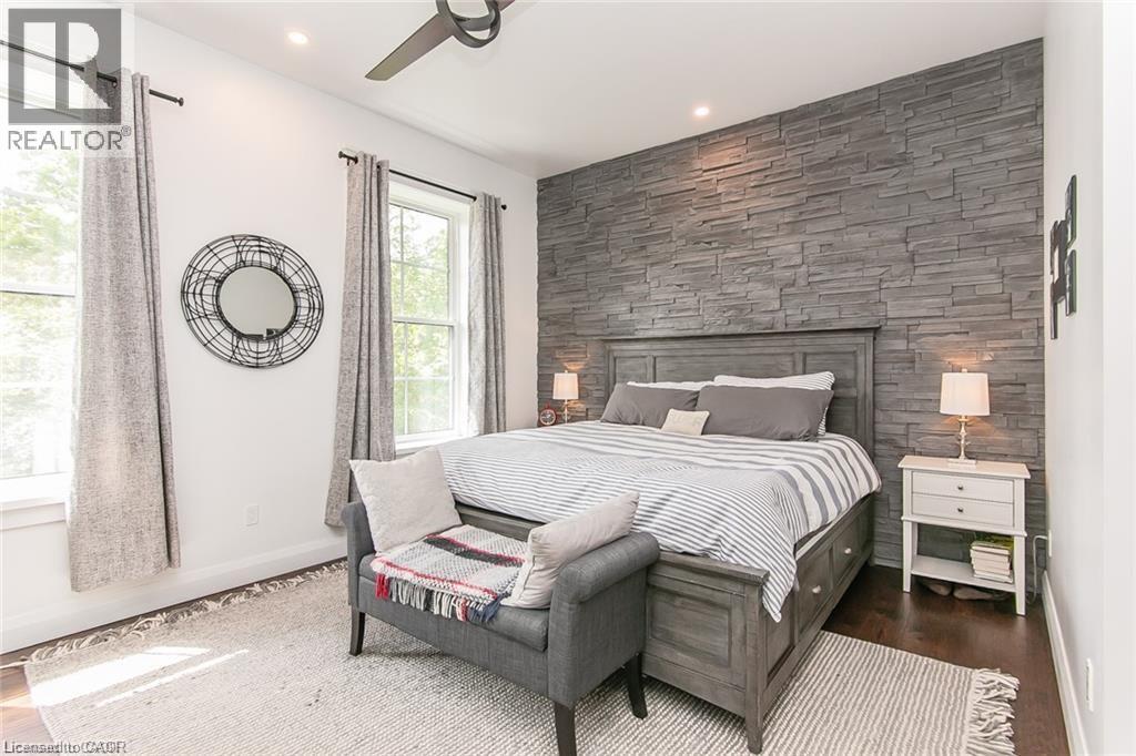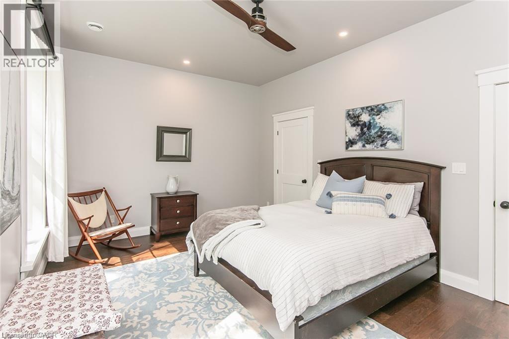 Spectacular Custom-Built Bungalow with Walk-out Basement, Triple Car Garage & Detached 2-Storey Garage & Shop on Two Acres-just 35-45 min from Waterloo! Nestled in an exclusive enclave of executive homes in Moorefield, this property offers a peaceful country setting with easy city access. Built like no other, it showcases structurally superior ICF (insulated concrete form) construction & a lifetime metal roof-the same quality extends to the det garage. Inside, the open-concept layout features exposed timber-frame details, soaring vaulted ceilings & 2 glass garage doors that open onto a 3-season porch. The kitchen, dining & living area impress w/ a stone f/p, concrete counters, oversized island & fantastic walk-in pantry w/ floor-to-ceiling storage. At its heart: an 8-burner Wolf gas stove, double ovens & upgraded range hood-over $40,000 in luxury appliances! Entertain year-round w/ the screened porch, complete w/ outdoor kitchen, brick hearth & fume hood for your bbq. The main floor also boasts a stunning primary suite w/ walk-in closet, spacious dressing rm & spa-inspired ensuite. A 2nd bedroom, currently an office, offers lovely treed views. A stylish mudroom, laundry rm & powder rm w/ live-edge barn door complete the main level. The fin w/o basement features heated floors, 2 bedrooms, 4-pc bath & expansive rec spaces-perfect for family gatherings or games night. 2 more w/o garage doors lead to the backyard & patio. For hobbyists, the 3-car gar is wired for an EV, while the sep insulated 2 storey workshop w/ electrical & wood stove provides endless options for projects, vehicles or gym. The nearly 2-acre property incl a pool-sized lot, new tiered deck, firepit area, treehouse & almost an acre of forest w/ a creek running through it. Your own private retreat! (id:46441)