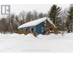 Welcome to this modest yet versatile 4+1 bedroom, 2.5 bath 1.5-storey bungalow set on a picturesque 10-acre treed property offering privacy and natural beauty. The land is beautifully landscaped with mature pine and hardwood trees, creating a peaceful country setting. A separate exterior entrance provides convenient access to the upper level, offering flexibility for extended family or private living space.The home features durable vinyl siding and large pressure-treated decks at both the front and rear-perfect for enjoying the surrounding nature in every season. Heating costs are kept low with an outdoor wood-fired boiler, complemented by a propane boiler system installed in 2024 that provides domestic hot water and radiant heating, either as a backup or in conjunction with the wood system. A new water filtration system was also installed in 2024 for added comfort and peace of mind.Outbuildings include a detached one-car garage with an attached wood/storage area, plus several additional structures including a charming log bunkie with a sleeping loft-ideal for guests or recreational use. This low-maintenance property offers space, privacy, and practical country living with multiple heating options and abundant outdoor storage.A great opportunity to enjoy rural living with room to grow and explore. (id:46441)