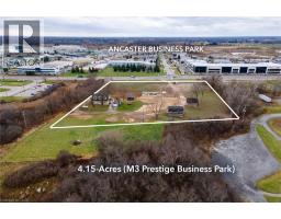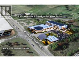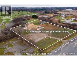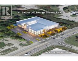 PRIME COMMERCIAL DEVELOPMENT OPPORTUNITY: Clean Phase II Environmental Report and a preliminary Geotechnical Study available. Tree removal on the property has just been completed leaving no impediments to development. 4.15-acres of industrial land zoned M3 Prestige Business Park, with municipal services at the lot line. Located at Wilson Street West / Hwy 2 and Tradewind Drive, directly across from the Ancaster Business Park with busy vehicle traffic for mass exposure. There is easy access to highway 403 & highway 6, and the Hamilton International Airport is less than 10 minutes away. The zoning allows for a long list of possible uses including: industrial, hospitality, administrative, manufacturing, mechanical, transportation and logistics. On the property there is a beautiful 4-bedroom home with an exterior garage, as well as a barn & workshop - plenty of interim use opportunity. *Renderings for visual representation only. (id:46441)