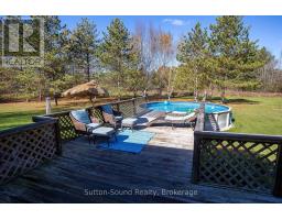 Beautiful bungalow in the country on a dead end road.  Catch yourself enjoying the outdoors at this lovely 2+ acre lot on the outskirts of town.   Entertaining sized porch leading to the above ground pool for making summer memories.  Lots of space to snow shoe in the winter or settle in and watch the snow fall from inside you warm cozy home.  One floor living with 3 bedrooms 2 bathrooms and two living rooms gives you lots of space for your family or to have family come and stay.  A approximately 35x18 shed currently used for storage has a median that runs down the garage, cannot park cars but could be a great work shop.  Conveniently located just off highway 26. A short 5 minute drive to Owen Sound, Close to all the East Side amenities and many Bruce trail access points and only a 12 minute drive to Meaford. If using google or GPS please use address as 143659 SIDE ROAD 15 OWEN SOUND- to get the home. (id:46441)