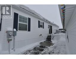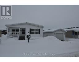 Welcome to 144 Rosewood Drive in the friendly and sought-after North Park Estates, a welcoming community for all offering comfort, convenience, and a relaxed lifestyle. This well-maintained, freshly painted North Park Model bungalow features bright, one-level living with two bedrooms, large closets, and two bathrooms. The open-concept layout is filled with natural light and includes a spacious living room and dining area ideally positioned to enjoy morning sunrises. The large kitchen offers new countertops and backsplash, an island, generous cabinetry, a cozy eating area, a pantry, and all appliances less than two years old, making everyday living both easy and efficient. The generously sized primary bedroom includes a new 3-piece ensuite with a walk-in shower, while a second bedroom, full bath, and newly renovated main-floor laundry room complete the interior. Outside, enjoy the covered composite front porch surrounded by perennial gardens or relax on the new side deck with railing and peaceful open views, perfect for sunsets, birds, and butterflies. The detached, extra-wide garage features a concrete floor and offers both front and rear access. Additional highlights include a paved driveway, natural gas BBQ hookup, central air conditioning, owned water softener, and economical utilities. Residents own their home and lease the lot - no land transfer tax, with park-maintained roads plus water and septic services. Just minutes from Owen Sound with easy access to Georgian Bay and Lake Huron, North Park Estates continues to be a popular choice for people seeking community, comfort, and carefree living. (id:46441)