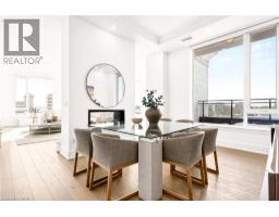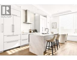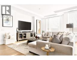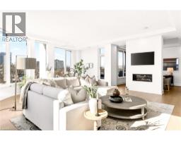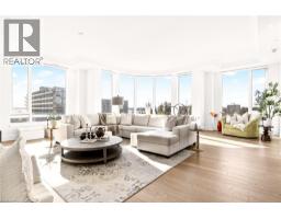 Perched above the city at the prestigious Saxony, this extraordinary 2,578 sq. ft. penthouse redefines what condominium living can feel like. Here, life unfolds with space, light, and effortless elegance. Ten-foot ceilings and expansive principal rooms create an immediate sense of calm and grandeur, while walls of windows draw in the ever-changing sky. As evening falls, step onto the 300 sq. ft. southwest-facing terrace and watch the sun melt into the horizon, city lights beginning to sparkle below, a glass of wine in hand. The nearly 28-foot great room was designed for both intimate evenings and unforgettable gatherings. A double-sided fireplace flickers between living and dining spaces, adding warmth and ambiance whether you’re hosting a dinner party or enjoying a quiet night in. The open-concept kitchen, anchored by premium integrated appliances and generous prep space, becomes the heart of the home, where conversation flows as easily as the layout itself. The versatile 2+1 bedroom design adapts beautifully to your lifestyle. The den is spacious enough to function as a true third bedroom, private office, or creative retreat. The primary suite is a serene sanctuary, complete with a walk-in closet and spa-inspired ensuite designed for slow mornings and restorative evenings. A thoughtfully appointed second bedroom ensures guests or family feel equally at home. Custom closets and automated blinds throughout reflect a level of finish that is both refined and practical. Beyond the suite, three oversized parking spaces, including an EV charger, and a large private locker provide rare convenience and flexibility. Residents enjoy concierge services, a fitness studio, and a rooftop lounge that extends your living space even further. Steps to the lake, the Burlington Performing Arts Centre, boutique shopping, and celebrated dining, this penthouse offers the privacy and scale of a home paired with the vibrancy of downtown living — a place where every day feels elevated. (id:46441)