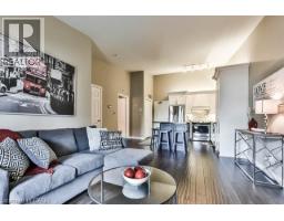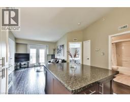 This bright and spacious unit boasts a fantastic open concept with beautiful balcony view. The gorgeous kitchen with stainless steel appliances and island flows into the living room with private balcony. This unit has hardwood flooring throughout leading into the main bedroom and the extra bedroom/den as well. Also included are in-suite laundry, 1 underground parking space, storage locker, and additional visitor surface parking. Enjoy the use of the on-site exercise and party room. BBQs allowed on balcony. This is a prime location within walking distance to many amenities and close to the QEW, 403, and 407. Tenant to pay utilities. No smokers. No pets preferred. Minimum 1 yr. lease. Submit credit check with score, rental application, letter of employment, and references with any offers. (id:46441)