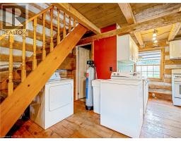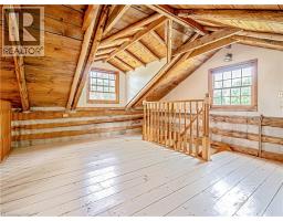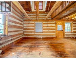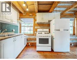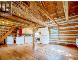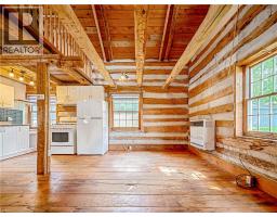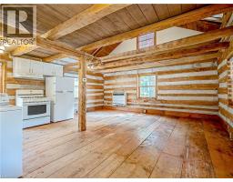 This charming log home is situated on a large mature lot in the heart of Rockwood. With a covered front porch you can sit outside and watch small town life from your rocking chair or enjoy some quiet time on the backyard patio. The floor plan is open concept with the living room and dining room having a catherdal beamed ceiling. Wide plank pine floors adorn the main floor. A generous loft is the perfect place for your bedroom, overlooking the main floor. Dormer windows provide natural light into the loft. The heated and insulated double garage/workshop is the perfect place for your cars and toys. Just 15 minutes to Guelph and 20 minutes to the 401, this home is conveniently located. (id:46441)