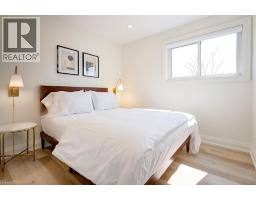 FULLY FURNISHED all inclusive RENTAL – Stunning luxury 2-bedroom, 1-bathroom, main floor suite located in boutique building. Elegantly appointed and beautifully upgraded suite features a purposeful layout with wide plank luxury vinyl hardwood throughout the open concept kitchen, dining and living rooms. This bright and spacious fully furnished suite features a comfortable living space with plush sofa and chairs, glass office desk with display shelving flanking and smart TV. Enjoy the chef-style kitchen, complete with floor to ceiling white shaker cabinetry, premium quartz countertop, full-sized stainless-steel appliances, including dishwasher and built-in microwave, tile backsplash, under cabinet lighting, breakfast bar and sliding glass patio door leading to the large private deck. Bedrooms are serene with neutral colour palettes, nightstands, quality linens, and wardrobe with plenty of storage. Spa-inspired bathroom with glass walk-in shower featuring rain head, adjustable handheld shower arm, modern pedestal sink, and full-sized stackable washer and dryer. Suite includes 2 car parking. Located steps to the exquisite downtown Burlington waterfront, Spencer Smith Park, boutique shops, restaurants, QEW, 403, 407 and GO. No smokers, all residents must qualify to lease suite. (id:46441)