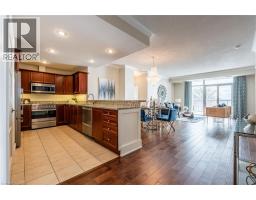 Wake up to breathtaking lake and park views every morning in this beautifully updated suite at Bunton’s Wharf, one of downtown Burlington’s most sought-after waterfront residences. Offering 1,407 sq. ft. of refined living, this 2-bed, 2-bath condo blends luxury, comfort, and an unbeatable location along the shores of Lake Ontario. The bright, open-concept living and dining areas feature 9 ft ceilings, LED pot lights, crown moulding, and rich maple engineered flooring. Step onto your private balcony to enjoy serene views of Spencer Smith Park and the waterfront, the perfect backdrop for morning coffee or sunset unwinding. The gourmet kitchen is a standout, complete with high-end Fisher & Paykel appliances, a two-drawer dishwasher, granite counters, breakfast bar seating, and a generous walk-in pantry with in-suite laundry. Both bedrooms offer walk-in closets, oversized bay windows, and stunning lake views, while the two spa-inspired bathrooms provide comfort and elegance. Enjoy resort-style amenities, including two fitness centres with a golf simulator, a rooftop heated pool and terrace with BBQs, a party room, a games room, sauna, and concierge service. This unit includes underground parking and a same-floor locker, offering exceptional day-to-day convenience. Steps to Spencer Smith Park, the Burlington waterfront trail, boutique shopping, fine dining, cafés, and Joseph Brant Hospital, all with quick access to the QEW, 407, and GO Transit. (id:46441)