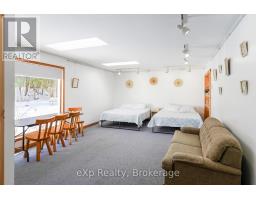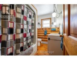 Live and Earn on 10 Private Acres on the Bruce Peninsula. Tucked away on a serene, wooded 10-acre lot, this stunning log home is a peaceful retreat with all the comforts of modern living. The open-concept greatroom, with cathedral ceilings and a stone fireplace, is the heart of the home, flanked by two sun-drenched sunrooms featuring skylights and flagstone floors. The spacious, light-filled kitchen offers a large island and ample cabinetry, perfect for family gatherings or quiet meals. A cozy main-floor bedroom and full bath provide easy living, while two more bedrooms upstairs - one with its own private balcony - are paired with an additional full bath.The beauty of the home extends outdoors with landscaped grounds and the surrounding woods, offering both privacy and natural beauty. But that's just the beginning. Located separately from the house is a converted bungalow, offering three fully independent rental units - a smart investment opportunity. One unit is a two-bedroom "cottage". The other two units are charming open-concept guest suites with private baths - ideal for short-term rentals. All units are bright, spacious, and being sold fully furnished. Nestled just off Hwy 6 in a prime tourism area, this property is surrounded by opportunities for hiking, beach visits, and access to the crystal-clear waters of Georgian Bay. Whether you're looking to operate a vacation rental business or enjoy a peaceful lifestyle surrounded by nature, this property offers the perfect balance. Just a short drive from Wiarton, you'll have access to shopping, dining, hospital services, and more.This is a rare opportunity to own a slice of paradise while generating income -all within the stunning beauty of the Bruce Peninsula. (id:46441)