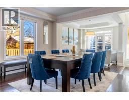 Step into this executive Heathwood home in Milton’s sought-after Scott neighbourhood, offering over 3,200 square feet of thoughtful design, timeless finishes, and family-friendly space. The main floor welcomes you with a sunken foyer, nine-foot ceilings, rich oak flooring, coffered and crown-detailed formal rooms, a private office, and a warm family room centred around a gas fireplace. The kitchen is the heart of the home, featuring granite counters, an island with a breakfast bar, a stone backsplash, built-in pantries, and premium Dacor appliances. Upstairs, four spacious bedrooms each enjoy direct access to a bathroom, including a generous primary retreat with a tray ceiling, gas fireplace, custom walk-in closet, and a relaxing ensuite with two vanities, a jetted tub, and a glass shower. The finished basement expands your living space with a rec room, built-in media wall, bar-height seating, a full bathroom, and plenty of storage, with potential for a future side entrance thanks to the wide side yard. Outside, enjoy a portico entry, stone walkway, a private backyard with a stone patio, and a double-wide driveway with no sidewalk. Located on a quiet street at the base of the escarpment, close to trails, top-rated schools, downtown Milton, and with quick access to the upcoming Tremaine/401 interchange, this is an opportunity to move into a prestigious neighbourhood designed for family living and everyday comfort. (id:46441)