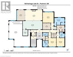 Exclusive Custom-Built Bungalow in Prestigious Heritage Lake Estates . Welcome to a truly one-of-a-kind residence, meticulously crafted for those who demand elegance, innovation, and comfort. Located in the coveted gated community of Heritage Lake Estates, this Net Zero Ready custom bungalow is a masterclass in design and sophistication. Set on a beautifully landscaped half acre lot, it offers the perfect blend of luxury, space, and modern efficiency. Spanning 7,400 sq. ft. of living space plus over 600 sq. ft. of additional storage, this home features 5 spacious bedrooms each with private ensuites, and 2 stylish powder rooms, ideal for family living and entertaining.Inside, 14-foot ceilings and floor-to-ceiling windows flood the space with light. The open-concept layout connects living, dining, and kitchen areas with access to the oversized covered patio. Elegant finishes include engineered hardwood flooring, 9-foot solid core doors, custom plaster moldings, and heated floors.The gourmet kitchen is an entertainers dream with top of the line built-in appliances, custom cabinetry, stone-clad island, and a walk-in pantry offering excellent storage.The fully finished lower level includes a recreation room, wet bar, games room, home gym, and multimedia theatre for relaxation and entertainment.Outside, the heated 3-car garage fits 6+ vehicles with lift options and includes a Tesla charging station, perfect for car enthusiasts and eco-conscious owners.Nestled within a lakeside community offering private lake access, walking trails, and a peaceful setting just 2 minutes from Highway 401 and nearby amenities, schools, and shopping.This is more than a home its a rare opportunity to own a landmark combining architectural excellence, energy-conscious living, and luxury in one of the regions most sought-after neighbourhoods. (id:46441)