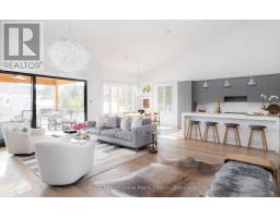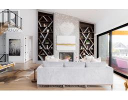 Welcome to 149 Landry Lane, an extraordinary custom home by Stamp & Hammer that fuses modern Scandinavian architecture with refined luxury finishes across nearly 4,000 sq. ft. of meticulously designed living space. Positioned on a professionally landscaped corner lot in the heart of Lora Bay, this home combines architectural elegance with lifestyle.The sunlit open-concept main floor impresses with soaring 20' ceilings, 7.5" engineered white oak floors, extensive custom millwork, sleek glass railings, and designer lighting. Smart home automation integrates SONOS surround sound, Lutron lighting, and automated blinds. The chefs kitchen showcases solid maple touch-face cabinetry with interior lighting, a striking 10' quartz waterfall island with 4" edge, quartz counters and backsplash, hidden outlets, and premium Fisher & Paykel and Blomberg appliances. Anchoring the great room is a dramatic 50 Napoleon guillotine wood-burning fireplace wrapped in Italian Terrazzo stone, opening through 16' Tiltco sliders to a 20' x 20' covered deck overlooking lush irrigated gardens. The main-floor primary suite is a serene retreat featuring a custom fireplace surround, spacious walk-in closet, and spa-inspired 5-pc ensuite with heated 24" x 24" tile, floating double vanity, soaker tub, curbless shower, SONOS, and Lutron blinds. A stylish powder room, private office, and mudroom with laundry, pantry, and dog wash complete the level. Upstairs offers 2 bedrooms, a 4-pc bath, and a sunlit loft with fireplace. The finished lower level includes a guest suite with Jack & Jill ensuite, an additional bedroom, home theatre with built-in audio, sleek wet bar with 11' quartz island, Terrazzo-wrapped gas fireplace, sauna, radiant in-floor heat, and a bookmatched marble feature wall. With 4 fireplaces, 10' doors, architectural upgrades, and a 2-car garage, no detail is overlooked. Ownership includes access to a private beach, clubhouse with gym and restaurant, and a world-class 18-hole golf cou (id:46441)