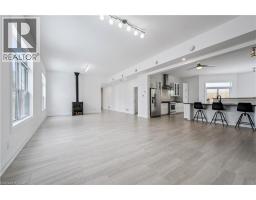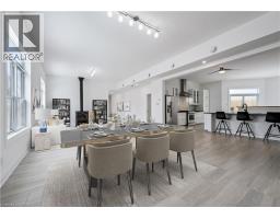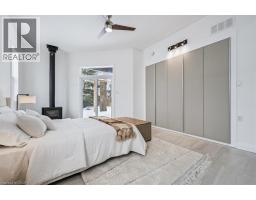 Welcome to 149 Woolwich Street, a truly one-of-a-kind custom home offering over 3,600 sqft of thoughtfully designed living space, with 5 bedrooms and 5 bathrooms, all on one level. From the moment you step inside, the bright, welcoming foyer sets the tone, complete with a cozy sitting area, a powder room, and a private guest suite with its own ensuite bath and outdoor patio with a pergola. A floating staircase creates an impressive architectural focal point, with modern glass railings, natural wood treads, and a stunning live wall. Upstairs, the loft offers an inspiring space for an office, studio, or creative retreat, with panoramic views and abundant natural light. At the heart of the home, the open-concept kitchen, dining, and living areas feel spacious and airy, highlighted by 10 ft. ceilings, expansive windows, and a charming wood-burning stove. The kitchen features a large island, granite countertops, stainless steel appliances, and a gas range with a chimney hood. Around the corner, you’ll find a convenient laundry area and patio doors leading to a side terrace with a natural gas hookup for easy outdoor grilling. Designed for both comfort and efficiency, the home features multi-zone in-floor heating throughout. A separate family room at the centre of the home provides a private, versatile gathering space tucked away from the main living area. The primary suite is a luxurious retreat, complete with its own wood-burning stove, built-in closets, walkout to the deck, and a spa-inspired ensuite with a double vanity and a full-width shower. Each additional bedroom has been carefully designed for flexible furniture placement and extra windows to maximize natural light and cross-ventilation. Outside, the private, fenced backyard is surrounded by beautiful mature trees and features a large deck with a pergola, ideal for relaxing or entertaining. The property also includes a single-car drive-through garage and two separate driveways, with parking for up to 6 vehicles. (id:46441)