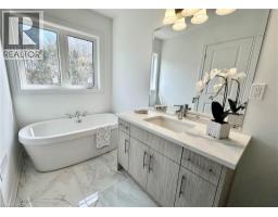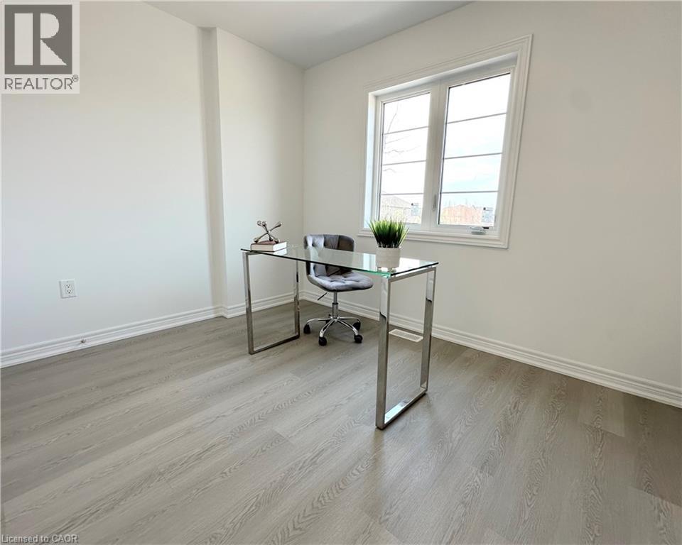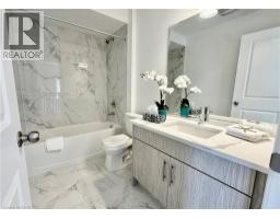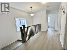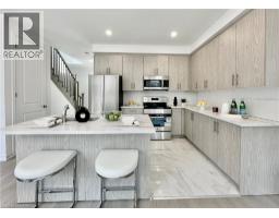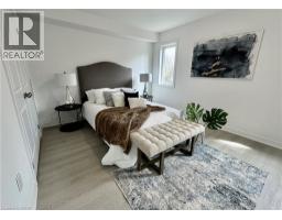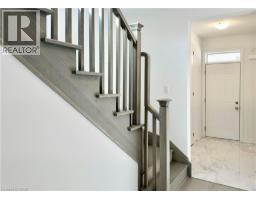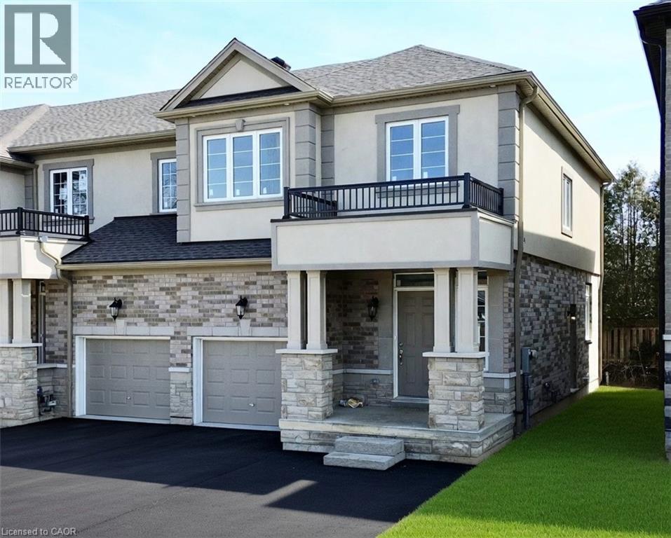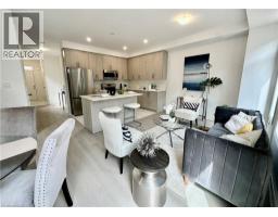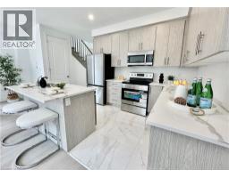 Welcome to this beautifully finished brand-new freehold end-unit townhome located in the highly desirable West Hamilton Mountain community. Offering just under 1,500 sq. ft. of thoughtfully designed living space, this modern home combines style, comfort, and functionality with the added benefit of no condo or road maintenance fees! The main level features 9-foot ceilings, 8-foot doors, and a bright open-concept layout, complemented by a refined oak staircase with matching railings and durable pre-finished flooring throughout. Upstairs, the well-planned design includes the convenience of bedroom-level laundry, adding ease to everyday living. The spacious primary bedroom serves as a private retreat, complete with a well-appointed 4-piece ensuite bath. The lower level offers approximately 600 sq. ft. of unfinished space with a rough-in for a future bathroom, providing excellent potential for a recreation room, home office, or additional living area tailored to your needs. As an end unit, the builder has thoughtfully included a separate side entrance with direct access to the basement, adding flexibility and future potential. This home is backed by the Tarion New Home Warranty, offering added peace of mind for the new owner. Ideally located close to schools, parks, shopping, and major highway access, this property is an excellent fit for families, professionals, and investors alike. Additional models are also available within the development. (id:46441)