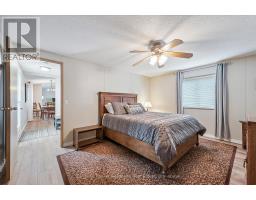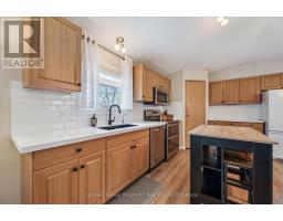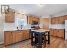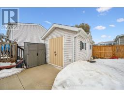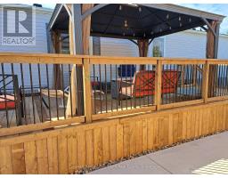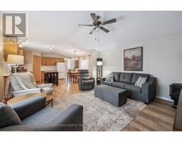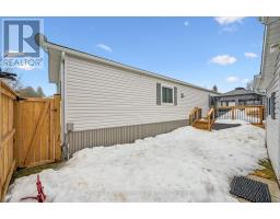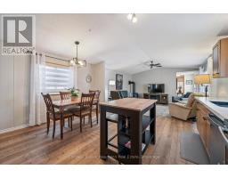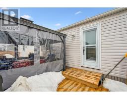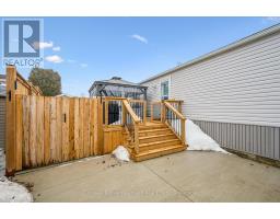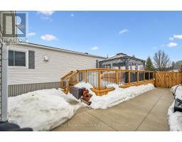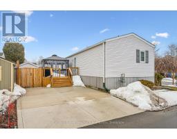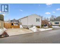 Welcome to this charming home in the sought-after Mini Lakes community, ideally situated on a desirable corner lot and just minutes from Highway 401, making commuting easy. In Mini Lakes, you own the land, not lease it, offering added value and peace of mind. This well-maintained home offers 3 bedrooms, with numerous updates completed in recent years, including new skirting and apron around the house (2020), all new windows (2021), and new LVP flooring throughout (2021). Additional upgrades include a new freestanding gas fireplace (2022), new roof shingles (2023), a new concrete driveway and walkway (2024), a new fenced backyard (2024), and a beautifully updated kitchen featuring quartz countertops, an undermount sink, faucet, and tile backsplash (2024). The home also features new front and back doors (2025) and a new deck (2025). An insulated shed/workshop with hydro provides excellent space for hobbies, storage, or projects. Step outside to enjoy the outdoor patio with gazebo, extending your living space during the warmer months and creating a great area for relaxing or entertaining. The property also offers parking for up to 3 vehicles. All appliances, window coverings, and hanging and mounted light fixtures are included, along with the freestanding gas fireplace in the living room and the gazebo on the deck. A 2018 RXV golf cart with battery charger is also available and may be negotiated as part of the sale.Mini Lakes residents enjoy a vibrant lifestyle with excellent amenities, including spring-fed lakes and canals, a heated outdoor pool, community gardens, and scenic walking trails. Residents can also take part in activities such as fishing, swimming, bocce, darts, and card nights, making it easy to stay active and connect with neighbours. Enjoy peaceful community living with convenient access to Highway 401 and nearby amenities. (id:46441)