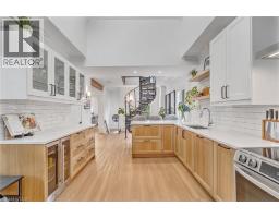Beautifully upgraded century home in the highly sought after Kirkendall South neighborhood. This turnkey legal duplex features upgraded finishes, high ceilings, and preserved stained glass windows. Primary upper unit offers a stunning renovated kitchen (2024) with quartz countertops, new cabinets and appliances. The unit has updated flooring, trim, hardware and has been professionally painted throughout. The spiral cast iron staircase leads you to a bright loft-style primary bedroom complete with its own private walkout balcony. The lower level unit offers its own character with original maintained hardwood flooring, large kitchen island, high ceilings, and lots of natural light. Ideal for extended family or rental income. Situated on an extra deep lot, the home offers ample garden and outdoor space, complete with a spacious front porch, three private balconies, and covered patio, there's no shortage of outdoor space. This home has been meticulously maintained, recent upgrades include; new high efficiency Lennox furnace & heat pump (2023), chimney & brick repointing (2023), new furnace exhaust stack (2023), sound/fire-rated insulation between units on main level (2024), professional painting (2025), upgraded front entrance deck (2025). This one-of-a-kind property is steps to Locke Street, parks, schools, shops, major highways, and transit. Perfect for investors, multi-generational living or anyone looking for a truly special home in one of Hamilton's most desirable neighbourhoods. (id:46441)