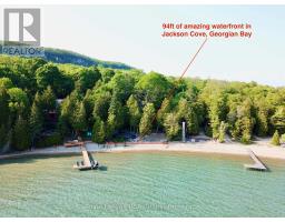 Architecturally UNIQUE, custom 4-SEASON WATERFRONT PROPERTY in EXCLUSIVE JACKSON COVE on Georgian Bay. This HEXAGON-INSPIRED Contemporary Design offers 4 bedrooms, 3 bathrooms, OPEN-CONCEPT LIVING SPACE featuring a CUSTOM VAULTED WOOD CEILING with skylights and simply stunning TIMBER FRAME structure. Natural Stone fireplace in full view of living room, dining room & kitchen areas. Updated MODERN KITCHEN with granite counters, breakfast bar & water views. MASTER with ENSUITE and WALKOUT to private patio. Lower Level walkout with Circular Staircase & Custom Tin Ceilings offers separate living space, including Family Room & 4th bedroom with water views, finished laundry room & 3pc bathroom. HUGE INSULATED STORAGE area with overhead door to waterside, 2,300+ sq ft of living space on two levels. Outside, this 3/4 ACRE property offers ELEVATED DECKING w/COVERED OUTDOOR LIVING SPACE, composite decking w/glass wall railings. BEAUTIFULLY LANDSCAPED w/stone walkways, many mature trees for AMAZING PRIVACY, and 94 FT OF PRIVATE GEORGIAN BAY SHORELINE in Jackson Cove! A CUSTOM HEXAGONAL WATERSIDE DECK w/cabana & HOT TUB. Incredible, crystal-clear waters protected from open Georgian Bay wave allow for seasonal BOAT DOCKING and A SAFE WATERFRONT for all types of WATER ACTIVITIES. Jackson Cove offers STUNNING NIAGARA ESCARPMENT VIEWS, walk to BRUCE TRAIL w/300ft high lookouts above the Cove ... simply no better location on the Bruce Peninsula! 10min drive to Lions Head (shopping, hospital, marina, school etc), 45min to Tobermory, 35 min to Sauble Beach and less than 3hrs from GTA & Southern Ontario. This is truly a SPECIAL WATERFRONT PROPERTY that MUST BE SEEN to truly appreciate. (id:46441)