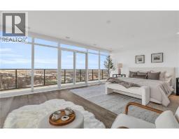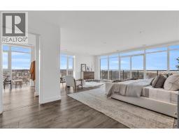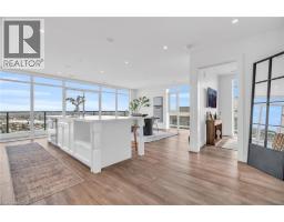 Luxury Penthouse Living in the Heart of the Gaslight District! An extraordinary 2,300 sq. ft. residence created by seamlessly combining two expansive units. Spanning the entire side of the building, this one-of-a-kind three-bedroom, three-bathroom home offers breathtaking panoramic views of historic downtown Cambridge and the Grand River. Step into a grand foyer that opens into a sun-drenched, open-concept living space. Floor-to-ceiling windows bathe the home in natural light, while engineered hardwood floors add warmth and sophistication. The thoughtful layout includes pocket doors in every bedroom, maximizing both space and functionality. At the heart of the home is a chefs dream kitchen, fully upgraded with quartz countertops and backsplash, an oversized island, and premium finishes. Designed for both style and efficiency, this space is perfect for intimate dinners or lavish gatherings. The primary suite is a private retreat, complete with a spacious walk-in closet/dressing area with custom organizers and a large window. The spa-like ensuite boasts a walk-in glass shower and dual sinks, while sliding glass doors provide direct access to the penthouses expansive 100-ft. terrace. The second bedroom features floor-to-ceiling windows, a wall-to-wall closet, and its own private three-piece ensuite. A third generous bedroom currently configured as an office/den offers additional flexibility. This extraordinary residence also features a wraparound balcony accessible from every room, offering spectacular sunrise and sunset views over the city skyline and Grand River. Additional features include two underground parking spaces (one with an EV charging station), two private storage lockers, and access to state-of-the-art amenities: a rooftop terrace, private dining room, fitness center, yoga & Pilates studio, and an elegant lobby. (id:46441)