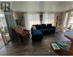 Golf cart included! Embrace the charm of a seasonal retreat in the coveted Countrylife Resort, where tranquility meets recreation from end of April to mid November. Nestled on a premium waterfront lot, this 2011 Woodland Park Muskoka Model exudes a cozy allure. Boasting 2 bedrooms and 1 bathroom, along with two sunrooms, there's ample space to host family and friends. Step outside to a spacious deck, complete with a separate 15x11 screen room, all offering picturesque water views. With paved parking for two cars, convenience is at your fingertips, and a brief stroll leads you to the sandy shores. Enjoy modern comforts with central A/C, natural gas heat, and municipal water and sewer, ensuring minimal upkeep. This cottage is poised for your family's enjoyment. The resort itself offers an array of amenities including pools, a splash pad, clubhouse, tennis court, playgrounds, and mini golf, ensuring endless entertainment. Rest easy in this gated community with seasonal security. Meticulously maintained, this unit is a must-see. Secure your spot in this idyllic retreat with seasonal site fees for 2025 priced at $7,610. Don't miss the chance to create cherished memories in this welcoming lakeside haven. (id:46441)