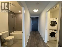 Let the sunshine in! This bright and well designed studio style unit is on the 18th floor facing west. Enjoy relaxing after work on your own private balcony and watching the sunsets! The studio floor plan includes a bedroom with corner glass doors, 1 bathroom, private laundry, an open concept living/kitchen/dining layout. The kitchen features quartz countertops, tiled backsplash, and stainless steel appliances. Located in the Midtown area of Kitchener, the Station Park towers are include amenities not seen anywhere else in the Region. Amenities include: Two-lane Bowling Alley with lounge, Premier Lounge Area with Bar, Pool Table and Foosball, Swim Spa & Hot Tub, Fitness Room with Gym Equipment, Yoga/Pilates Studio & Peloton Studio, Dog Washing Station, Landscaped Outdoor Terrace with Cabana Seating and BBQ’s, 24/7 Concierge Desk for Resident Support and Security, Private bookable Dining Room with Kitchen Appliances. Located along the LRT line, and in walking distance to an LRT Station, the VIA Rail and GO station, downtown Kitchener businesses, Google offices, Midtown Hospital, and so much more! Book your showing today! (id:46441)