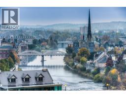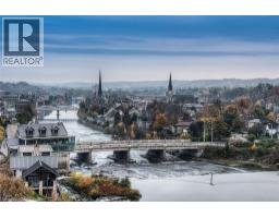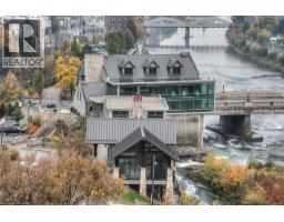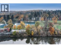 This Stunning 1 bed 1 bath corner end unit offers stunning picturesque views of the Grand River from the 105sq.ft balcony. Additional large airy windows also give you views of the gardens and street, this unit is really a must see to appreciate it. This unit offers laminate flooring, granite countertops, SS appliances and separate storage/laundry room that contains a stackable washer and dryer leaving plenty of room for your storage needs. 2 seperate owned parking spots come with this unit, 1 underground and 1 at the front of the building. A Storage locker, gym and party room round out the added features included. You will be steps away from Shopping, restaurants, trails and the Hamilton Family Theater. (id:46441)