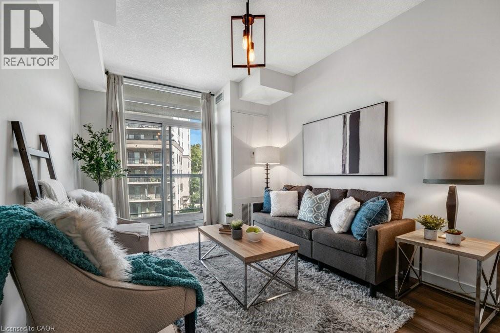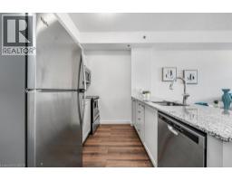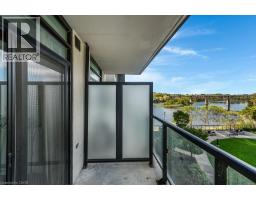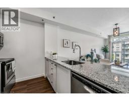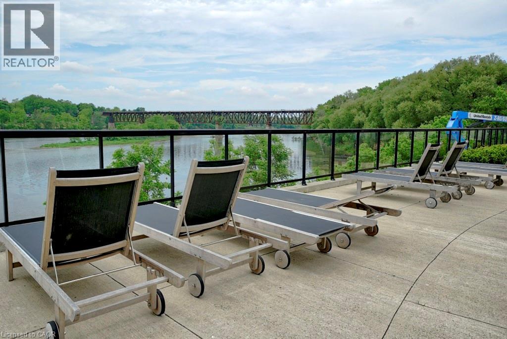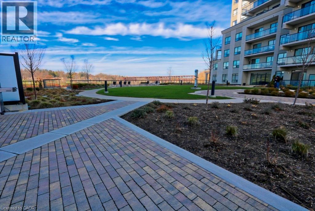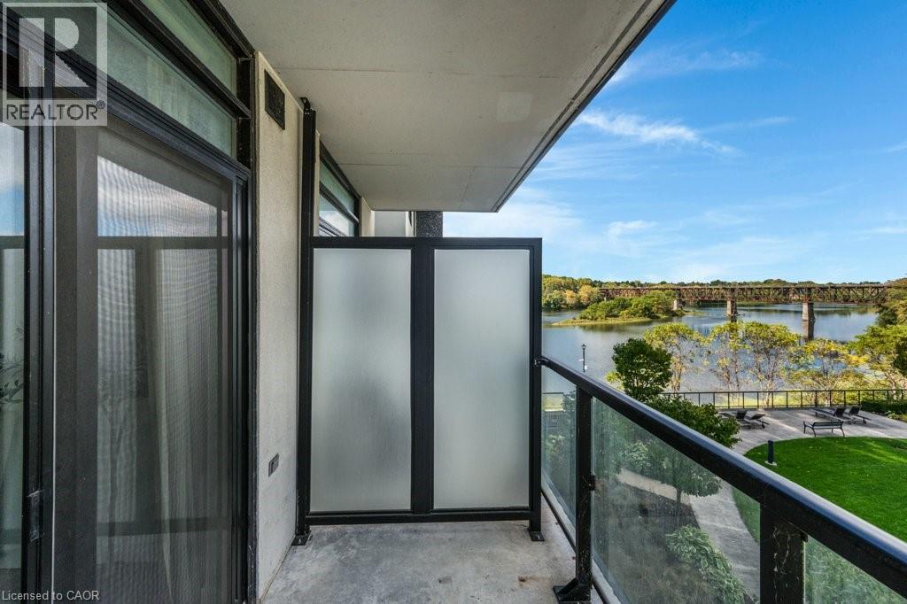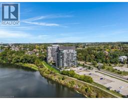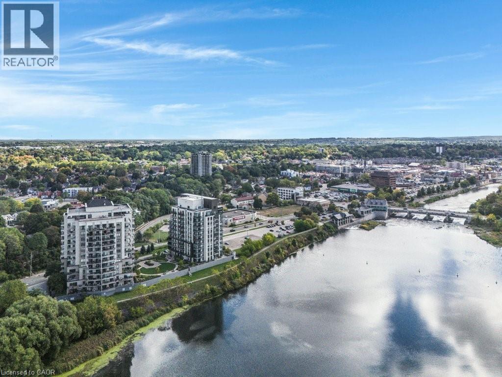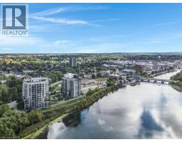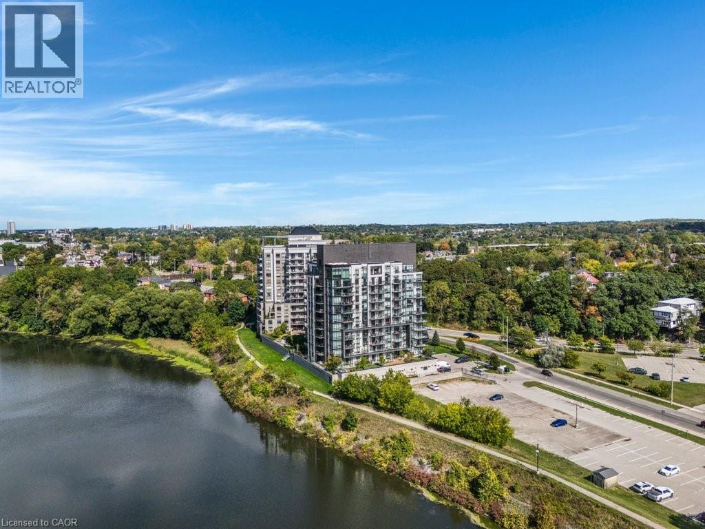 $600.86 MonthlyFor lease with immediate occupancy! This beautifully updated one-bedroom condo showcases sweeping views of the Grand River and a bright, spacious living/dining area with an open-concept kitchen and breakfast bar. The kitchen features four stainless steel appliances, while a convenient laundry closet with a stacked washer and dryer adds everyday ease. This freshly painted move-in ready unit offers modern laminate flooring, pot lighting, and granite countertops. Step through the living room patio door to your private balcony and enjoy tranquil river views. The building’s expansive riverside terrace provides lush gardens, generous seating, gas fire pits, and gas BBQs—perfect for relaxing or entertaining. Additional amenities include a fitness center, guest suite, party room, storage, and underground parking. Ideally located within walking distance to live theatre, scenic river trails, the farmers’ market, boutique shops, and great restaurants. A must-see! (id:46441)