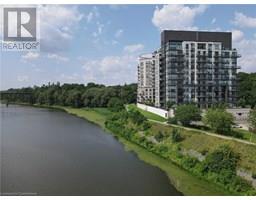 STUNNING VIEWS! 687 Sqft unit, one bedroom plus Den, one bath, open concept great room and kitchen, and 125 Sqft. balcony. Bright and sunny unit with floor-to-ceiling windows that provide an unobstructed view of the city core and the fall-colours, and view of the Grand River and the multiple bridges of the historic and architecturally renowned downtown Galt as well as magnificent sunsets. Walking distance to trails, parks, theatres, boutique shopping, restaurants, churches, places of worship, 2 public libraries, farmer’s market, schools, UW campus, the pedestrian bridge, the Gaslight district, public transportation, minutes to 401, and much more. Condo fees include all utilities except hydro (average $50/month), all amenities are free except the guest suite $75 for 1st night for cleaning. Offers an awesome fitness centre 24/7, Guest Suite, Party Room with walkout to an impressive Garden Terrace with BBQs and dining area for all your entertaining needs, and lounging area overlooking the Grand River. This building has a community living feel with all the social activities for various events including Christmas dinner/New Year celebrations, games night, gardening, book club, and much more. Secured entry building with security cameras. (id:46441)