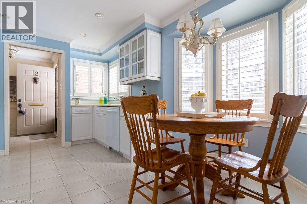 Welcome to #2-1501 Upper Middle Road, located in beautiful Burlington. This well-maintained townhome offers comfort, convenience and exceptional value in a desirable, quiet community. The main floor features a welcoming foyer and neutral tones throughout. The eat-in kitchen is complete with California shutters, pot lights, ceramic flooring, dishwasher, built-in microwave, and pantry cabinet for extra storage. The dining room offers hardwood flooring and sliding doors leading to a private, fenced backyard with beautiful gardens (no grass for easy maintenance!) and a new retractable awning. The living room also features hardwood flooring, large windows with California shutters, and an ornamental gas fireplace. Completing the main level is a convenient powder room. Upstairs offers two spacious bedrooms, including a primary with large sitting area, walk-in closet, and two-piece ensuite. The second bedroom with double closets enjoys easy access to the four-piece main bath, which includes a tub/shower combination with grab bars for added support. The finished lower level features a large rec room, ideal for entertaining or relaxing, a 3-piece bath, laundry room with stackable washer/dryer and plenty of storage space. Direct access from the single-car garage adds everyday convenience. Recent updates include a new furnace (2025), air conditioner (2024), roof (2025), windows and patio doors (2025). The well-managed condo community offers excellent inclusions such as snow removal, landscaping, and maintenance of the roof, windows, exterior walls, chimneys, and garage. Enjoy maintenance-free living with the added bonus of an outdoor pool and tennis court for residents to enjoy. Ideal for those looking to downsize, first-time buyers, professionals wanting a lock and go lifestyle, or anyone looking for a move-in-ready property in a wonderful Burlington location. Welcome Home! (id:46441)