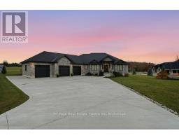 Welcome to this exceptional bungalow, perfectly situated on a spacious lot offering privacy, style, and room to entertain. The property features an impressive 4-car garage and a driveway that accommodates 12+ vehicles -perfect for gatherings or hobby enthusiasts. Step inside to an open-concept main floor filled with natural light and modern finishes. The bright, upgraded kitchen is a chef's dream, featuring a double-door pantry, Italian pot filler, and under-island garbage bins -beautifully blending function and design. The mudroom offers custom cabinetry and convenient direct garage access. The primary bedroom is a true retreat, showcasing a coffered ceiling, custom reading lights, and a luxurious 5-piece ensuite with a walk-in shower and free-standing tub. The second bedroom is currently used as a home office, offering flexibility for your lifestyle. A finished basement provides plenty of additional living space, including two additional spacious bedrooms, a home gym complete with sauna, and a 4-piece bathroom-ideal for guests or family. Step outside to your own private oasis: a covered lanai, on-ground pool, and hot tub create the perfect setting for relaxation and entertaining - all fenced and landscaped to provide the ultimate in privacy. This property truly offers the best of country living with refined style and comfort -an exceptional opportunity in beautiful West Grey. (id:46441)