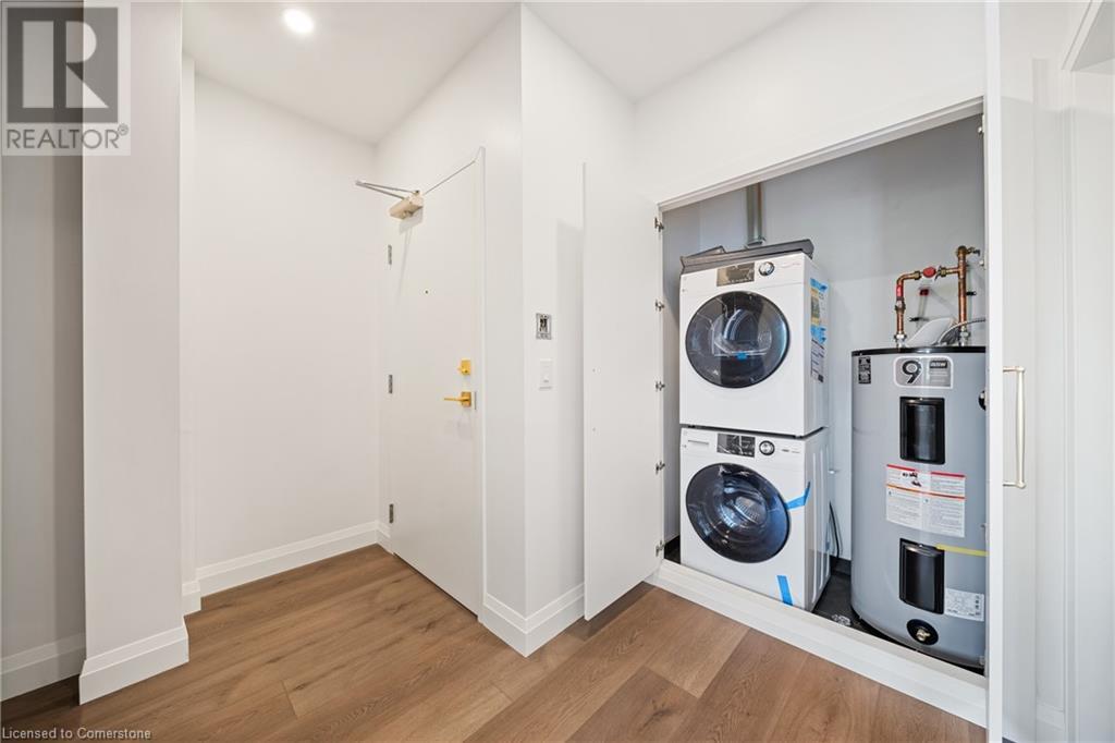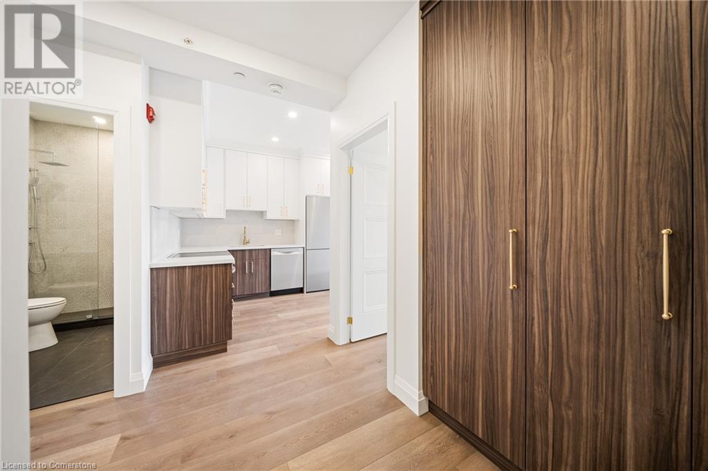 Step into something extraordinary. This brand-new, never-lived-in 1-bedroom unit in the heart of historic downtown Milton is where old-world charm collides with bold, modern luxury. Framed by a striking sage green door, the vibe starts before you even enter. Inside, it’s all about rich hardwood floors, custom marble-tiled bathrooms with heated floors, luxury crown molding, and gold-accented lighting that nods to the building’s timeless character—while delivering sleek, high-end appeal. The modern kitchen is made to impress, with stainless steel appliances, soft-touch cabinetry, and oversized window sills that flood the space with natural light. The open layout and high ceilings bring serious loft energy, while the versatile den offers space to create—whether it’s a home office, guest nook, or cozy media zone. Set in a boutique building with a beautifully curated common hallway, you’re surrounded by heritage vibes and design-forward finishes from the ground up. Live steps from La Toscana, Pasqualino, the Farmer’s Market, schools, parks, and major highways. This is more than a place to live—it’s a lifestyle with character and class. (id:46441)