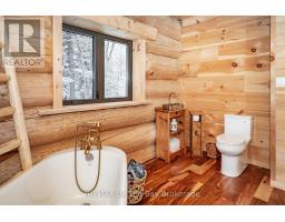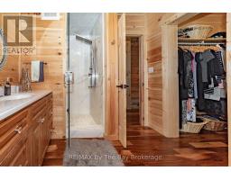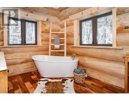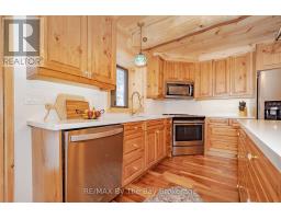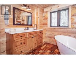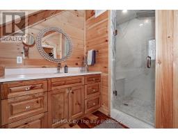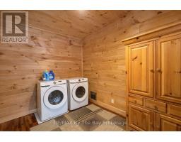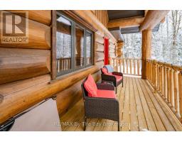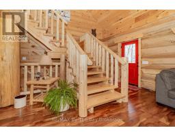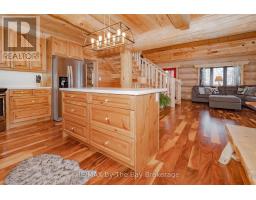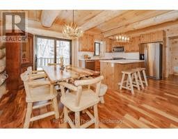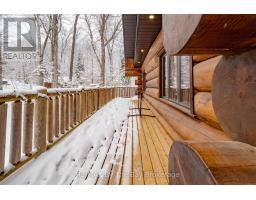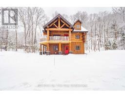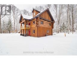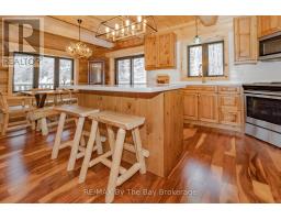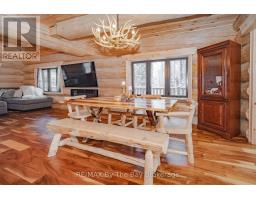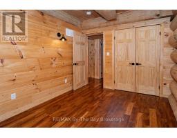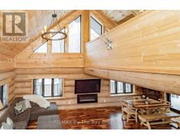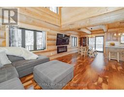 Nestled beneath a canopy of towering trees on a beautifully landscaped 1.27 acre private lot, this majestic three storey log home blends seamlessly into its natural surroundings. Warm, honey toned logs, meticulously crafted and stacked, create a timeless rustic elegance that welcomes you the moment you arrive. Step inside to an inviting atmosphere of cozy luxury. The open concept main level features a stunning kitchen with custom maple cabinetry, a large island, quartz countertops and a walkout to a three sided wraparound deck. Vaulted ceilings rise above the two storey great room where a show stopping staircase leads to the upper level, adding both drama and architectural charm. The walkout basement further enhances the home's versatility, offering entry access from three sides of the property, ideal for extended family or guests. This level is thoughtfully sectioned for in law capability, complete with a bright and spacious living area, a kitchenette and a full bath. Whether you are seeking a tranquil escape from the pace of everyday life or a home base for enjoying Muskoka's endless outdoor activities, this remarkable property is designed to exceed your expectations. (id:46441)