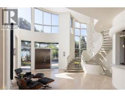 1540 Watersedge Road is a spectacular waterfront estate with jawdropping Toronto skyline views. Modern, private, and completely reimagined with extensive updates on all 3 levels and the exterior, including roof, flooring, staircase, automation, lighting, interior decor, redesigned garage and pool, with exterior landscaping including maintenance free lawn. Every element was designed to capture skyline views, natural light, and a lifestyle without compromise. Set on 0.6 acres along Lake Ontario, the residence showcases bold lines of glass, stone, and steel. Inside, walls of windows frame water and city vistas from every angle. The great room commands attention, anchored by a striking 360-degree fireplace. Heated floors and an elevator to all levels ensures both luxury and ease. A NEFF kitchen with pantry and laundry area balances style and function. The main-floor principal bedroom offers a spa-inspired ensuite and direct walkout to the deck. A versatile flex room, ideal as a gym or office, enhances the living space. Upstairs, three bedrooms with ensuites provide privacy and flexibility- two with terraces that extend directly to sweeping lake views. The lower level is designed for entertainment, featuring a home theatre, games lounge, secondary kitchen for catering and snacks, and guest suite. For the car enthusiast, the garage is exceptional, with epoxy flooring, custom cabinetry, and parking for six vehicles. Outdoors, the property becomes a private resort. A reimagined infinity-edge pool and spa by Gibson Pools stretches toward the horizon. Multiple terraces, dining areas, and lounging spaces are surrounded by perennial gardens and architectural features, blending beauty with simplicity.1540 Watersedge Road is a rare opportunity: a refined estate for contemporary living, equally suited for epic entertaining, where design, privacy, and breathtaking views meet on the lakefront. LUXURY CERTIFIED. (id:46441)