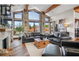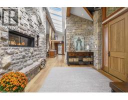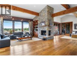 Experience an extraordinary retreat set on 122 acres of natural beauty. This custom stone bungalow, spanning 10,454.23 sq. ft., showcases high-quality finishes and thoughtful design. Step into the gourmet kitchen, equipped with Viking Professional appliances, Silestone Quartz surfaces, and striking Douglas fir beams. The dual islands invite gatherings, while the dining area offers seating for 14, overlooking a scenic ponds. High ceilings throughout the home create an open, inviting space, while the use of stone and wood details adds a warm, cozy atmosphere. Hand-chipped stone accents and skylights flood the interior with natural light, enhancing the home's connection to its surroundings. The primary suite opens directly to the swim ponds, offering indoor-outdoor living and a spa-like ensuite with a jacuzzi tub beside a gas fireplace. An indoor grilling area with heated floors offers year-round enjoyment, making it an ideal space for entertaining. The lower level is designed for fun and relaxation, featuring a full bar, billiards area, wine cellar, and a private cinema for movie nights. Outdoors, you'll find two ponds: one with a sandy beach and waterfall, and the other stocked for fishing. A heated, 4,000 sq. ft. exterior building with in-floor heating adds both function and flexibility to this expansive property. Explore the trails, unwind in the sitting areas, and enjoy this ultimate private getaway! (id:46441)