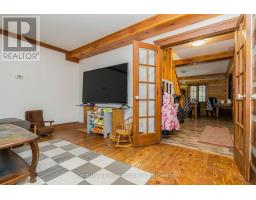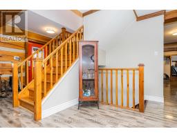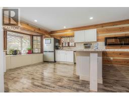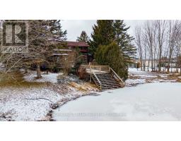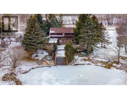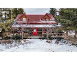 Circa 1989 Log home on 50 acres with storage/shop, pond and hiking trails. Log home features a wrap around deck with a large, 2 tier deck at rear with steps down to your own pond. Pond even has its own waterfall! Main floor is bright and crisp with open concept kitchen and dining room and walkout to rear deck. Great spaces for entertaining, both inside and outside! Or just cozy up in the adjoining living room to watch your favorite tv show. Upstairs features primary bedroom with its own ensuite, plus 2 more bedrooms and second bathroom. Basement has a good-sized rec room, adjoining office which is currently being used as a guest room, and a cold room for additional food & drink storage. Detached storage shed/workshop has lots of parking and separate driveway. It was once home to a busy retail greenhouse. You can still see where the additional greenhouses were once located. It has potential to be fully finished into the workshop of your dreams. Secondary hydro runs to a hookup just behind the greenhouse area and is currently being used for the "guest hookup" for when the family come to visit. Remaining acreage is wooded with some historical walking/riding trails and opportunity for more to be created! (id:46441)