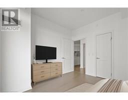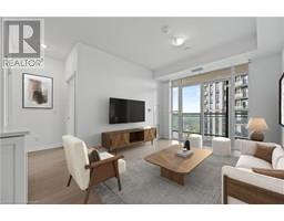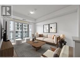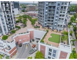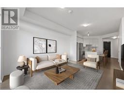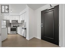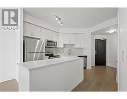 Stylish Uptown Condo with Sunset Views at Caroline Street Private Residences-Welcome to Suite 1411 at 155 Caroline Street, an impeccably maintained 1-bedroom, 1-bathroom condo offering 645 SF of stylish, move-in-ready living in one of Waterloo’s most sought-after addresses. Perfectly situated in the sought-after Bauer District, this freshly painted suite is filled with natural light and features floor-to-ceiling windows, engineered hardwood flooring, and a bright, open-concept layout. The kitchen is both stylish and functional, appointed with quartz countertops, a large island with storage, classic subway tile backsplash, and stainless-steel appliances—ideal for cooking, entertaining, or everyday living. The spacious living room flows seamlessly onto a large, private, west-facing balcony with sweeping city views—perfect for enjoying the evening sun. The bedroom features direct balcony access and a walk-in closet, while the upgraded bathroom includes ceramic tile flooring and a sleek modern faucet. Additional conveniences include in-suite laundry, one underground parking space. Residents enjoy premium amenities including a 24-hour concierge, fitness centre, rooftop terrace with BBQs and a putting green, guest suites, a media room, and a party room with pool table. Live steps from Vincenzo’s, Bauer Kitchen, the Willis Way LRT stop, Waterloo Park, boutique shopping, cafes, trails, and Uptown Waterloo’s thriving tech and innovation district. Experience elevated condo living in a prime location—book your private showing today! (id:46441)