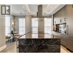 In the heart of Uptown Waterloo, this 3-bedroom, 4.5 bathroom executive townhome at 155 Caroline Street offers an exceptional blend of contemporary design and timeless sophistication. Thoughtfully enhanced with over $300,000 in bespoke upgrades, this residence is defined by its attention to detail, expansive room sizes and quality finishes. Wide-plank hardwood floors, soaring ceilings, and oversized windows with custom window coverings create a sense of airy elegance throughout. The open-concept kitchen is both striking and functional, complete with professional-grade stainless steel appliances, European-inspired cabinetry, exotic marble countertops, and a statement waterfall island. The adjoining dining area is perfectly suited for morning coffee and cozy evening dinners. Occupying the entire third floor, the expansive primary suite offers an indulgent retreat with a reading area, pass-through dressing area with custom built-ins, dual 3-piece ensuites—one with a deep soaking tub and custom shower and the other with dual sinks and toilet space providing separation for morning preparations. Two additional bedrooms, each with their own spa-like ensuites and generous closet space, provide comfort and privacy for guests or family. The finished lower level is designed with practicality in mind, featuring a mudroom, laundry area, powder room, direct garage access, an elevator, and ample storage. Additional features include secure 3-car underground parking, a private, in suite elevator servicing all levels, 2 lockers, and thoughtfully integrated storage throughout. All this, steps from the city's best dining, shopping, and cultural destinations, with effortless access to major routes and everyday conveniences. An exceptional residence where sophisticated urban living meets elevated comfort. (id:46441)