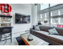 This 1+1 Bedrm Loft Is An Absolute Must See That Has All The I Wants, Open Concept W/12'Ceilings W/ Exposed Ductwork, Concrete Flrs & 8' Wood Drs Sliding On Metal Barn Rollers Throughout. Uniquely Designed W/A Metal Ladder In The Bedrm To An Upper Level Studio That Can Be Used As A 2nd Bedrm, An Office Or Additional Wardrobe Space. The Industrial Vibe Kitchen Has Granite Countertops & Island, Wood Cabinetry W/ Undermount Lighting, & Brick Backsplash Extends Into The Living Room Accent Wall .Loft Style, Ss Apps, Granite Countertops, 12' Ceilings, Concrete Flrs, Exposed Ductwork, 1 Parking, and EV charger available. (id:46441)