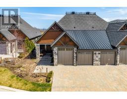 Experience elevated golf-course living in this exquisitely crafted 3600+ finished sq ft luxury residence overlooking premiere fairways and surrounded by lush, manicured landscaping. From the moment you arrive this home sets a new standard in refined elegance.Step inside to a bright, open-concept layout where high-end finishes and custom details shine. The chef's kitchen is a standout, featuring a large island with seating and top-tier built-in Wolf appliances-perfect for both everyday living and elevated entertaining. The adjoining great room with soaring ceilings and a floor to ceiling stone fireplace frames breathtaking views and opens to a sprawling stone patio with a custom hot tub and panoramic golf-course vistas.The main-floor primary suite is a serene retreat with a spa-inspired 5-piece ensuite-glass shower, freestanding tub, built-in bench-and a generous walk-in closet. A second bedroom (or office) , 2 piece powder, stylish mudroom with laundry and direct access to the fully drywalled/painted double car garage with EV Charger and garden door adds main-floor convenience.The lower level impresses with a large recreation space, complete with a wet bar, entertainment zone, and a glass-enclosed wine room. A gym (or third bedroom), luxury 4-piece bath, and ample storage further enhance this level. Positioned within one of the area's most coveted golf communities. A rare opportunity to own a luxury home that blends resort-style living, modern comfort, and an unbeatable golf-course setting. Some furnishings in media have been updated. (id:46441)