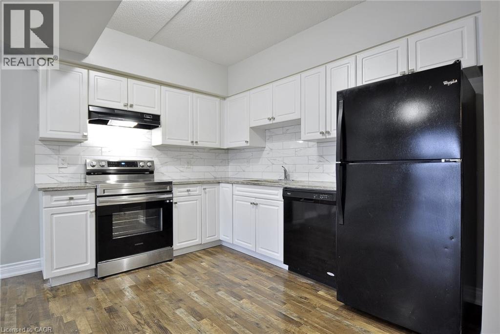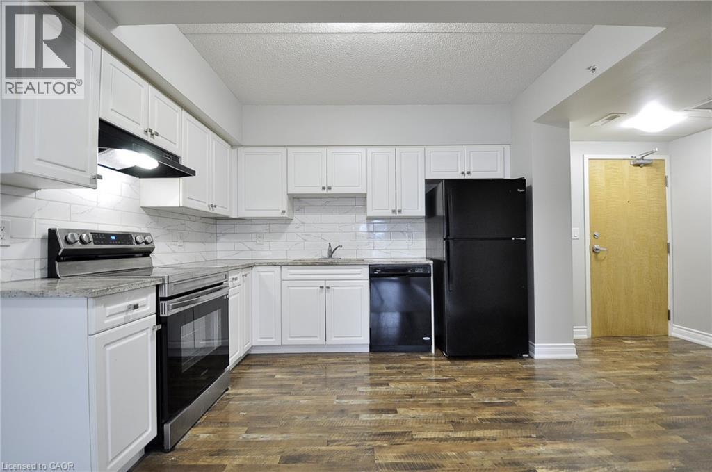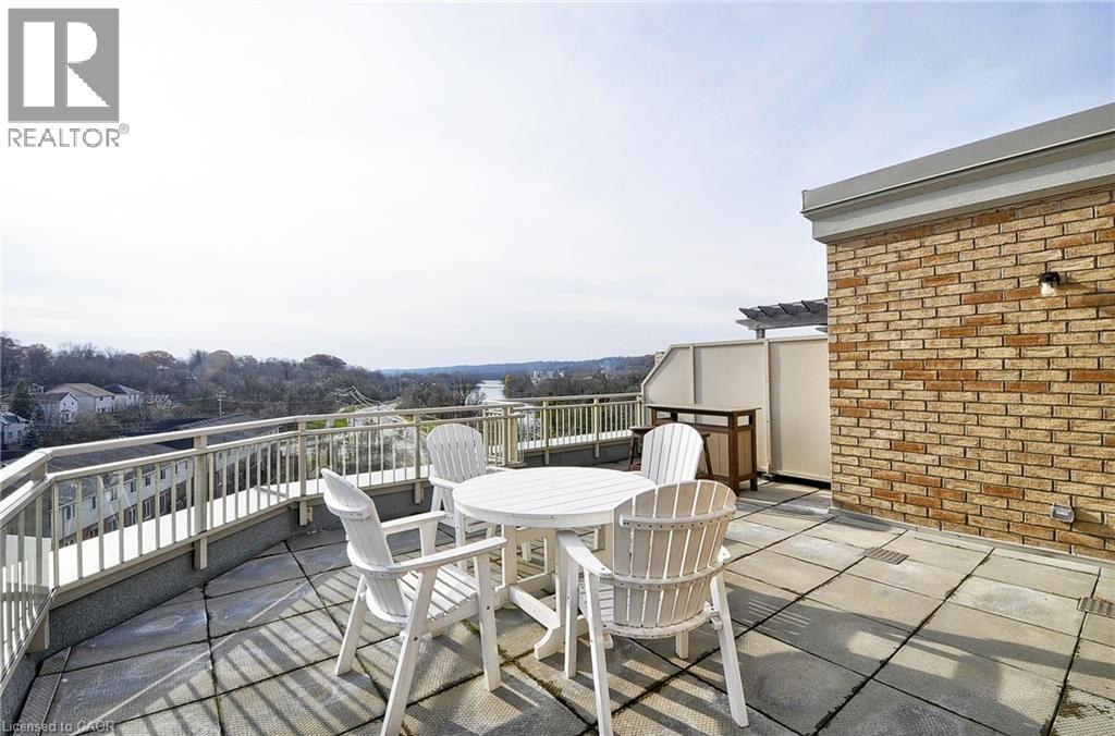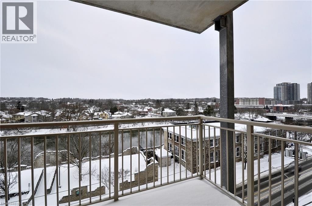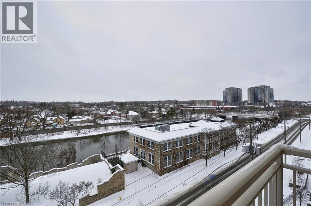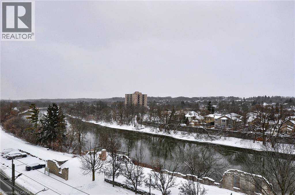 This 2-bedroom 2 Bathroom condo offers beautiful views of the Grand River, a prime location close to all the amenities that downtown Galt has to offer like the Cambridge Mill, University of Waterloo’s School of Architecture, and the vibrant Gaslight District. There is no shortage of trails, parks and activities to engage at your doorstep! As you enter your unit you will step into this freshly painted open-concept floor plan. Featuring expansive windows that flood the space with natural light. The kitchen is spacious and offers Fridge, Stove, Dishwasher & New Backsplash. The living room with new laminate flooring leads to a private balcony, perfect for enjoying peaceful river views and your morning coffee. The spacious primary bedroom offers a serene retreat and 4 pc ensuite, while the versatile 2nd bedroom can be customized as an office, gym or guest room. Both bedrooms have new laminate flooring. Building amenities include a rooftop terrace with a barbecue area and stunning views of the natural surroundings. There is plenty of visitor parking and a kids playground right next to the building at the rear side. Don’t miss the opportunity to live in this beautiful condo in a sought-after location! (id:46441)