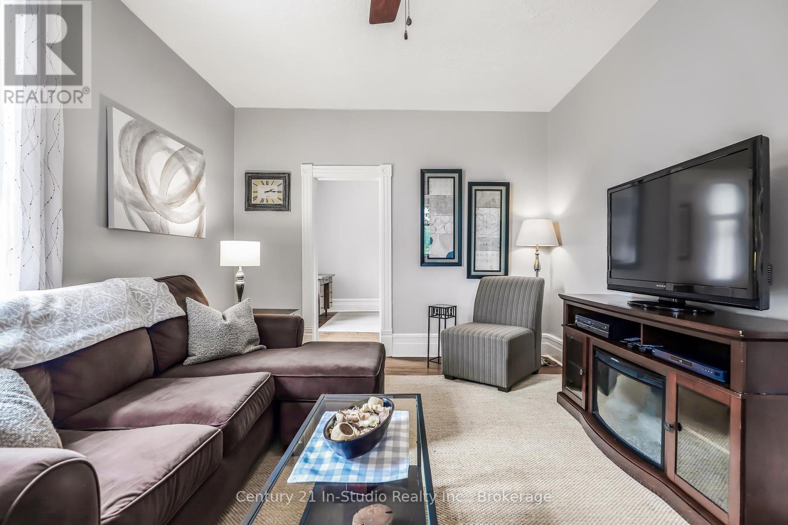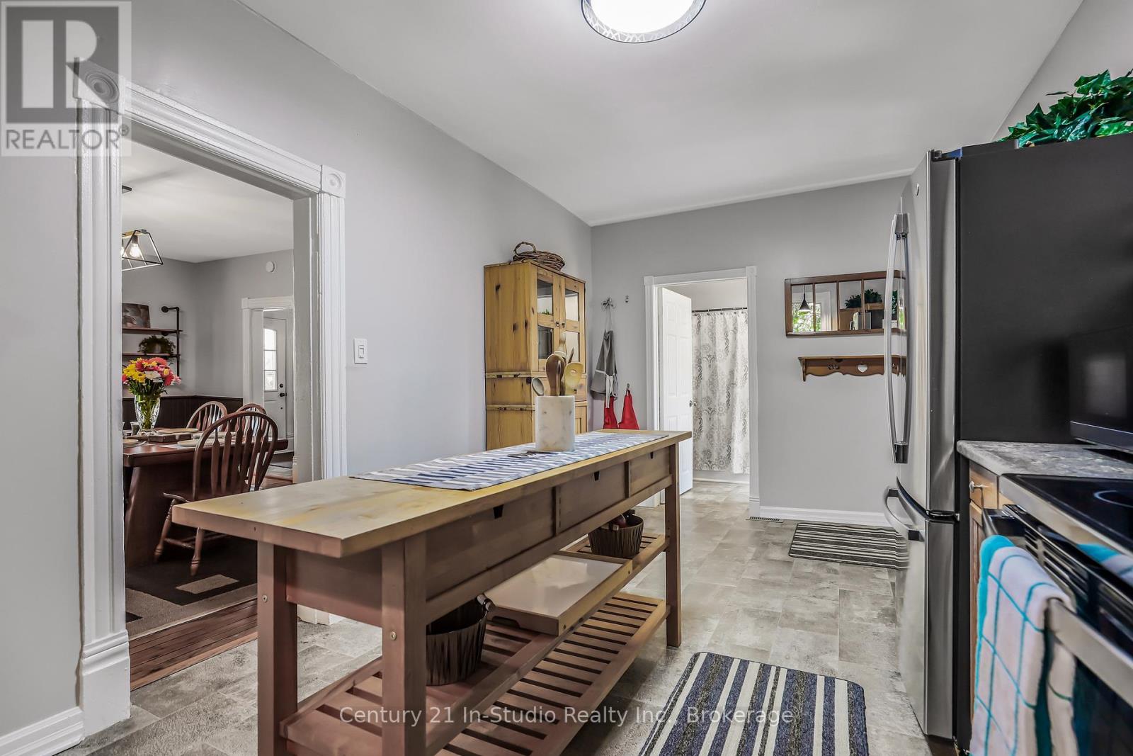 This charming two-storey century home combines its heritage character with modern updates, situated on a private 2 acre property in Grey Highlands with most furniture included! It is ideal for use as a year-round residence, rental property, or ski chalet, located just 6 km from Beaver Valley Ski Club and 1 km from access to the Bruce Trail. This offers an active four-season lifestyle with excellent hiking, biking, and outdoor recreation opportunities. A long gravel driveway leads to a welcoming wrap-around porch. Inside, you'll find a carpet-free interior that showcases original wood floors and a thoughtfully updated kitchen featuring newer appliances. The main level also includes a laundry room, four-piece bathroom, a side mudroom, and a screened-in back porch with a relaxing hot tub. Attached to the home is a back storage room that provides space for outdoor equipment. Upstairs, there are four well-sized bedrooms and an open sitting area. The attic has the potential to be converted into a future studio or additional living space. The partial basement features a cement floor, a sump pump, and wood storage with a convenient window chute for easy access. Key features of the home include an updated shingled roof, mostly replaced windows, a newer owned hot water tank, and a water treatment system equipped with UV light, a water softener, and filtration. Heating is provided by a forced-air oil furnace and a wood stove. The property is beautifully landscaped, featuring perennial gardens, trees for privacy, a crabapple tree, and a fire pit. There are also three sheds for ample storage: a small wood shed, a large wood shed, and a tin shed. Located about 10 minutes from Markdale for shopping, hospital services, and schools, and only 2 hours from Toronto, this property offers unbeatable access to world-class recreation activities, including skiing, lakes, waterfalls, hiking, golfing, and more, allowing you to fully embrace the Grey Highlands lifestyle. (id:46441)