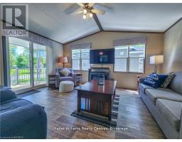 Escape to Fisherman's Cove Seasonal Resort, where relaxation and adventure go hand in hand. This 2022 seasonal home is the perfect retreat for nature lovers and families looking to make lasting memories. Set in a peaceful lakeside community, it offers the ideal mix of comfort and outdoor excitement. Inside, you'll find a bright and spacious living area with vaulted ceilings and expansive windows that let in plenty of natural light while showcasing beautiful views of the surrounding wilderness. The open layout seamlessly connects the living space to the kitchen, creating a warm and welcoming atmosphere. With modern furnishings, a sleek ceiling fan, and a cozy electric fireplace, this is the perfect place to unwind after a day of fun. The kitchen is designed for both style and functionality, featuring stainless steel appliances, dark countertops, and crisp white cabinetry. Whether you're making a quick breakfast or cooking a gourmet meal, this space is fully equipped to meet your needs. Step outside and immerse yourself in everything the resort has to offer. Enjoy your morning coffee or evening drink on the private deck while taking in the serene landscape. Take a refreshing dip in the pool, let the kids explore the playgrounds, or head to the floating water park for some excitement. Love the water? Spend your days fishing, boating, or just soaking up the lakeside views. As the sun sets, gather around a crackling fire and enjoy the peaceful night sky. Located in the heart of Fisherman's Cove, this site gives you access to a variety of amenities, including a marina and recreational facilities. Don't miss out on this incredible opportunity to have your own slice of lakeside paradise! (id:46441)