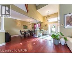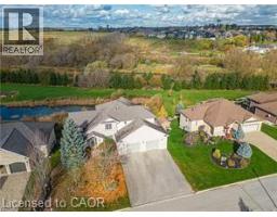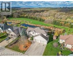 Where elegance meets comfort! Nestled serenely in the charming town of Drayton that offers a peaceful and tranquil atmosphere with its beautiful countryside, picturesque landscapes, calming presence of farmland & the Conestoga River/lake conservation/cottage area, this impeccably custom designed home offers the harmonious blend of rustic appeal, cozy comfort and a close connection with nature. Custom built executive home 82 feet wide premium lot with over 4000 sq ft finished space: 6 bedrooms, 4 bathrooms, 3 gas fireplaces and fully finished walkout basement. The main floor boasts a majestic vaulted-ceiling great room, 18 feet high, and abundance of natural light throughout. The open-concept design seamlessly connects the living spaces, formal dining area and kitchen. The kitchen is handcrafted by a Mennonite carpenter: maple cupboard, quartz countertops and a center island, which makes the kitchen a chef's delight. Relax and entertain on the deck or backyard, where you can savor picturesque sunsets and the soothing sounds of nature. All season postcard views make every day feel like a cozy retreat. The balcony and walkout basement both provide access to the breathtaking panoramic views of the pond and green space. This property offers a carpet-free environment, and also boasts an oversized 2-car garage and a driveway that can accommodate up to 6 cars. Newly installed energy efficient Heat pump and smart thermostats with 10 years warranty. High speed fiber optic cable internet connects to the home fiber optic modem and whole house wired with internet and AV ports. Internet security cameras installed at 4 sides. 5 mins walk to amenities/school/library/glocery/clinic/church/park. (id:46441)